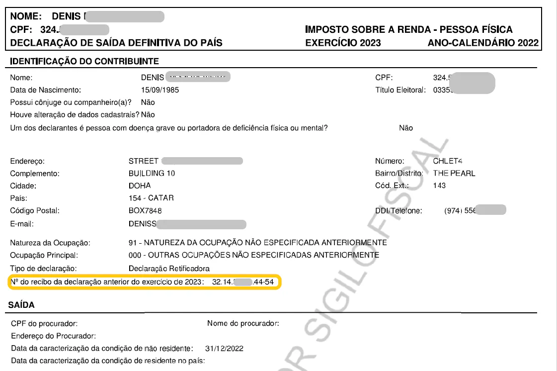 No caso deste contribuinte continua com o endereço antigo no Brasil declarado na DIRPF 2022 (original), esperávamos que o relatório fiscal estivesse o novo endereço no exterior informado na DSDP 2022 retificadora.