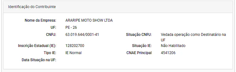 Estou com uma situação envolvendo um cliente — uma empresa do setor de peças para motos — referente à Inscrição Estadual no estado de Pernambuco.